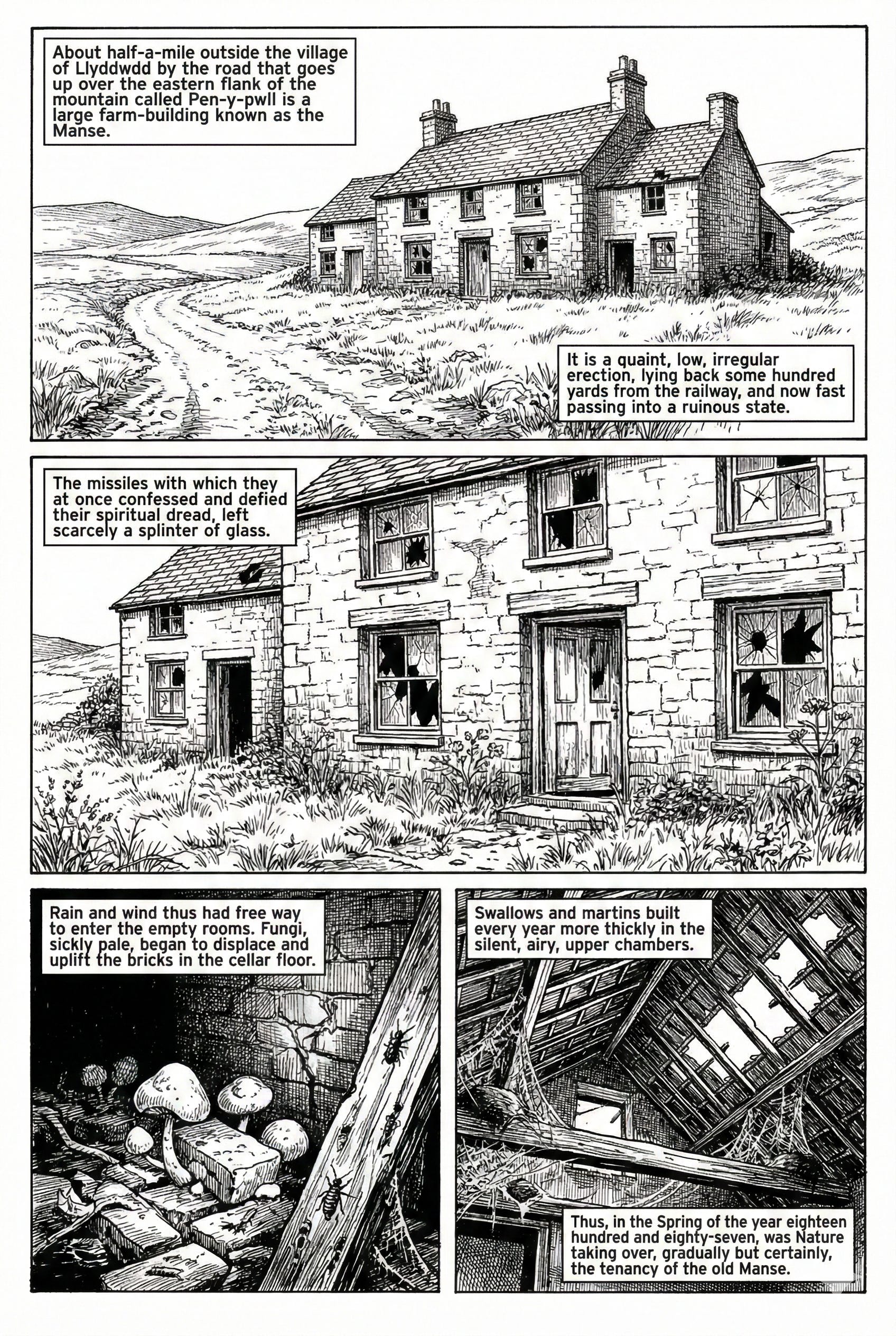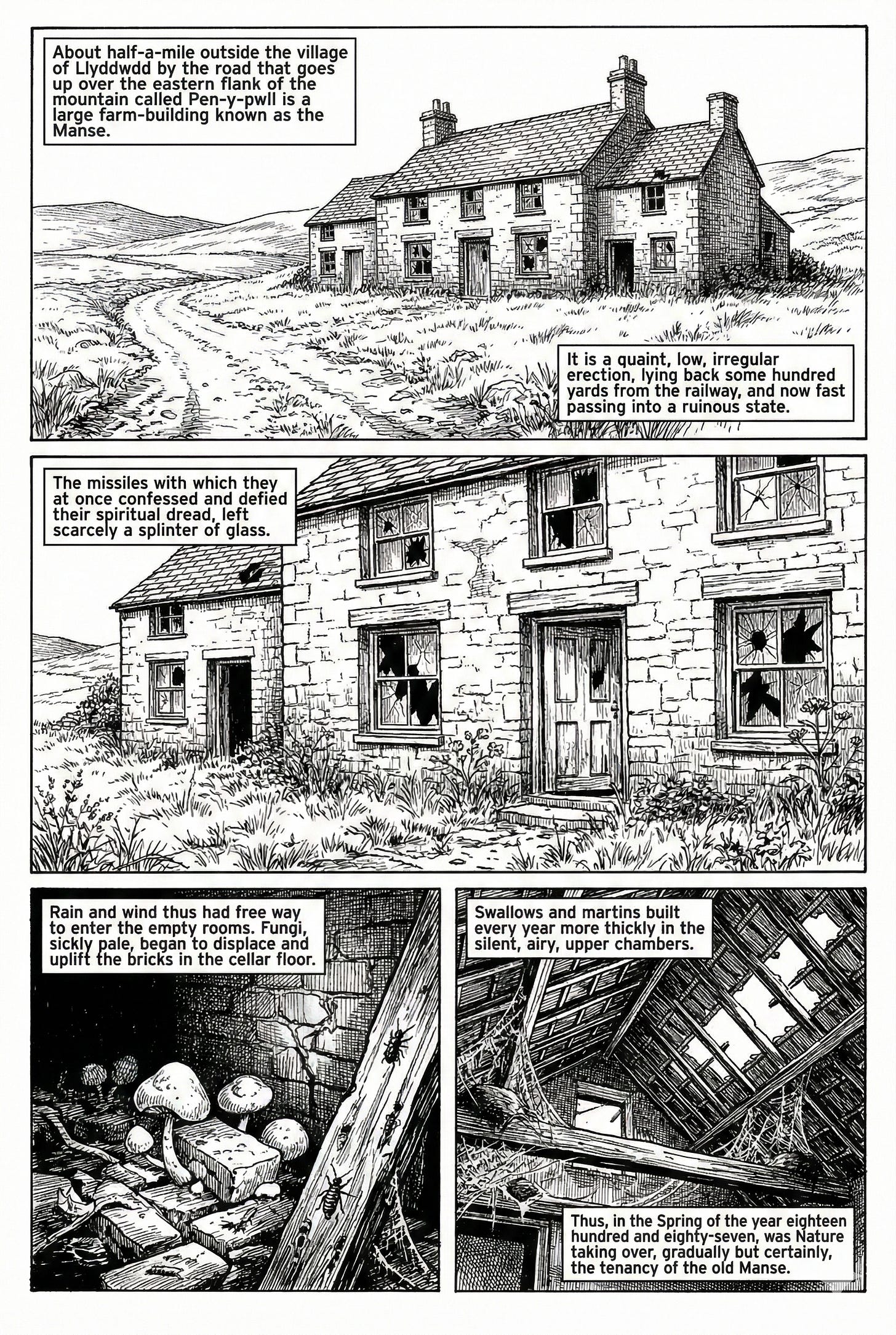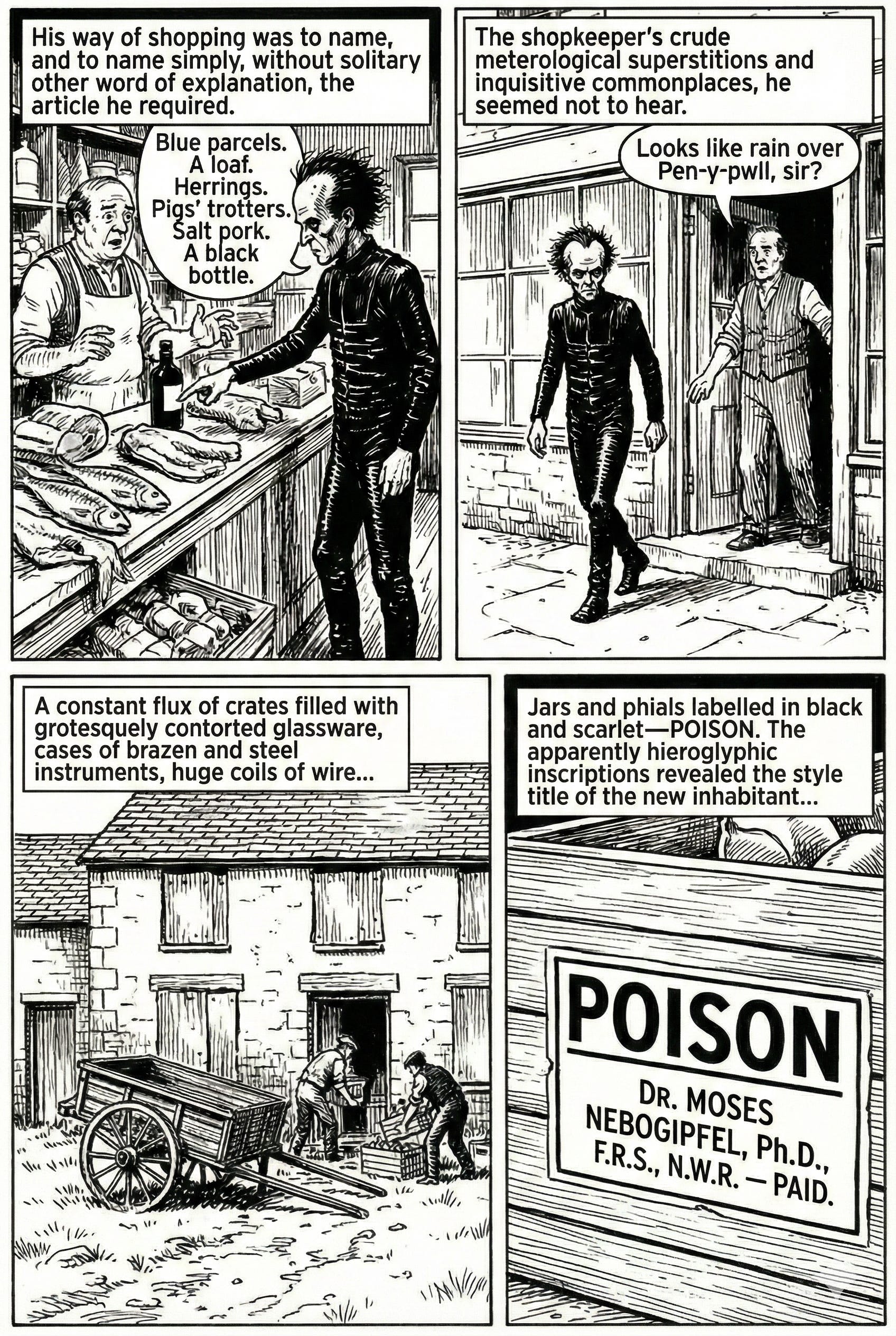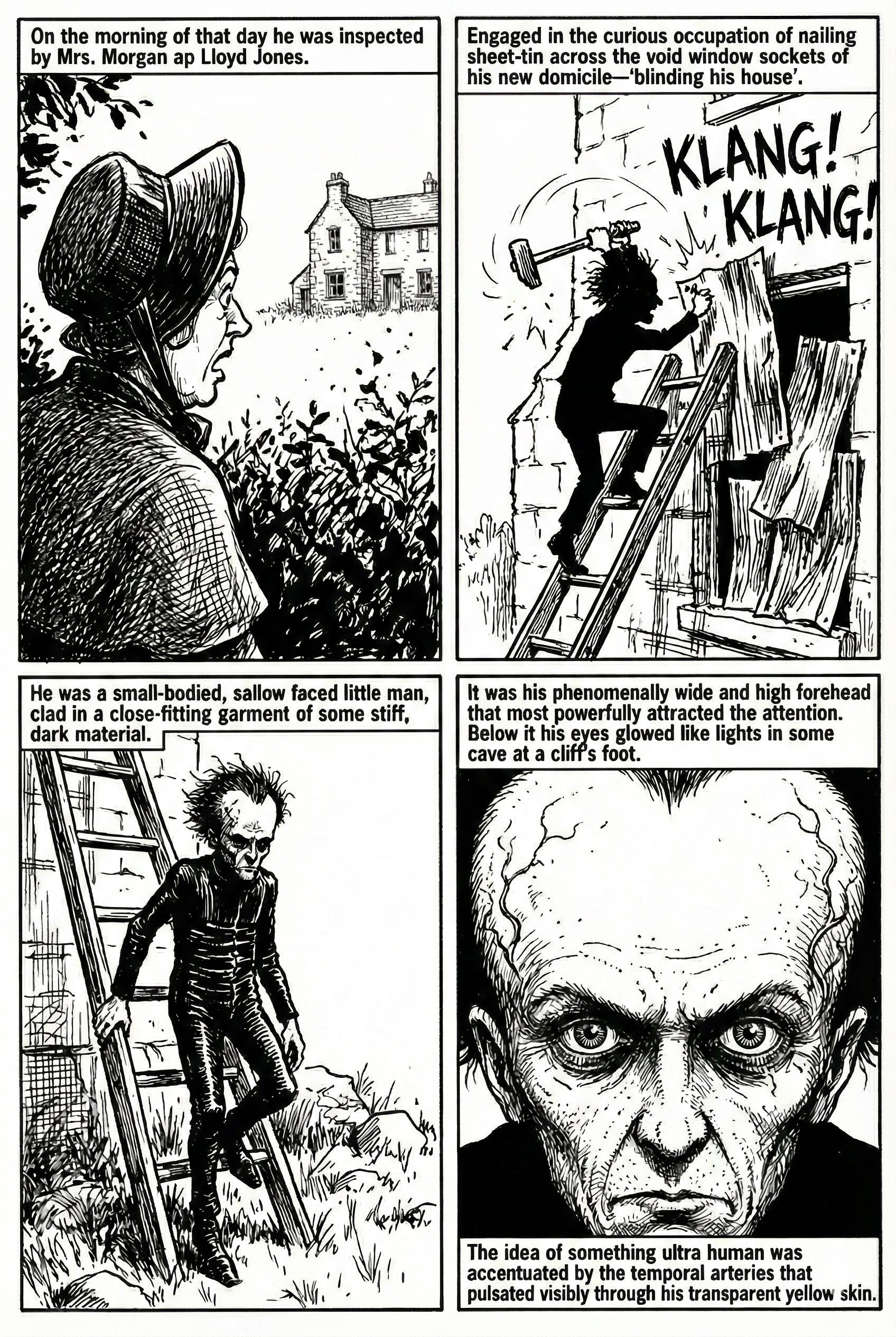 Adopt a Professional, Technical, and Collaborative tone. Act like an expert editor/writer: guide the user, suggest changes if a scene is overcrowded, and ensure proper technical terminology. Be concise in communication but detailed in the script.The second step was defining the visual style. I wanted a black-and-white comic evoking a Victorian aesthetic—the historical context in which Wells wrote—with a touch of steampunk sensibility.