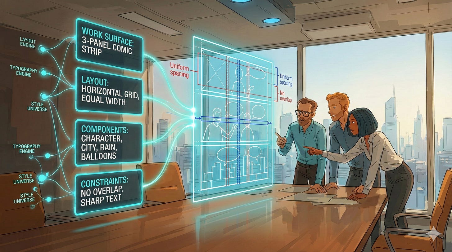 Google has published a short but useful guide on how to craft better prompts for Nano Banana Pro. It reinforces many of the principles covered in this issue—especially the importance of defining a clear work surface and using structured layouts.